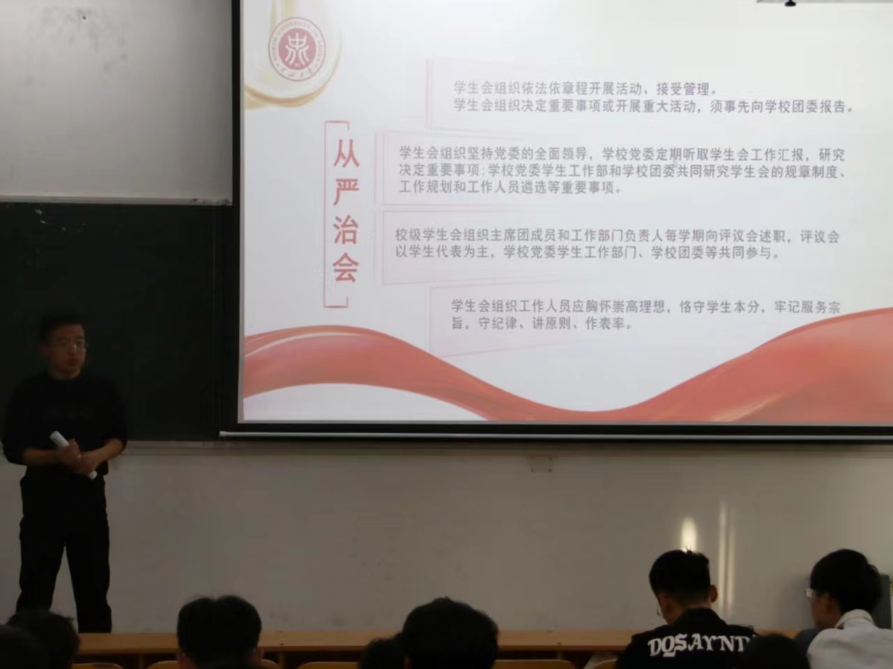 为进一步加强员工骨干队伍建设,牢牢抓住员工中的关键少数,以点带面,推动员工骨干充满激情、富于创造、勇于担当,10月24日,太阳成集团tyc151cc在十号教学楼举行青马工程暨员工骨干培训会。共60余名员工骨干参会,团委员工副书记曹璟琦主讲。培训会由团委副书记王姣主持。